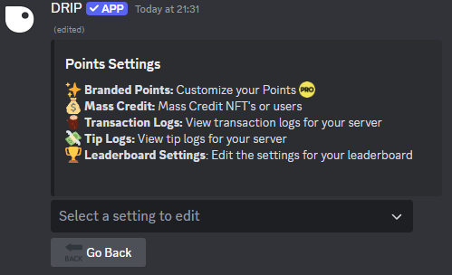 💰 Points Settings option in the Settings Menu.