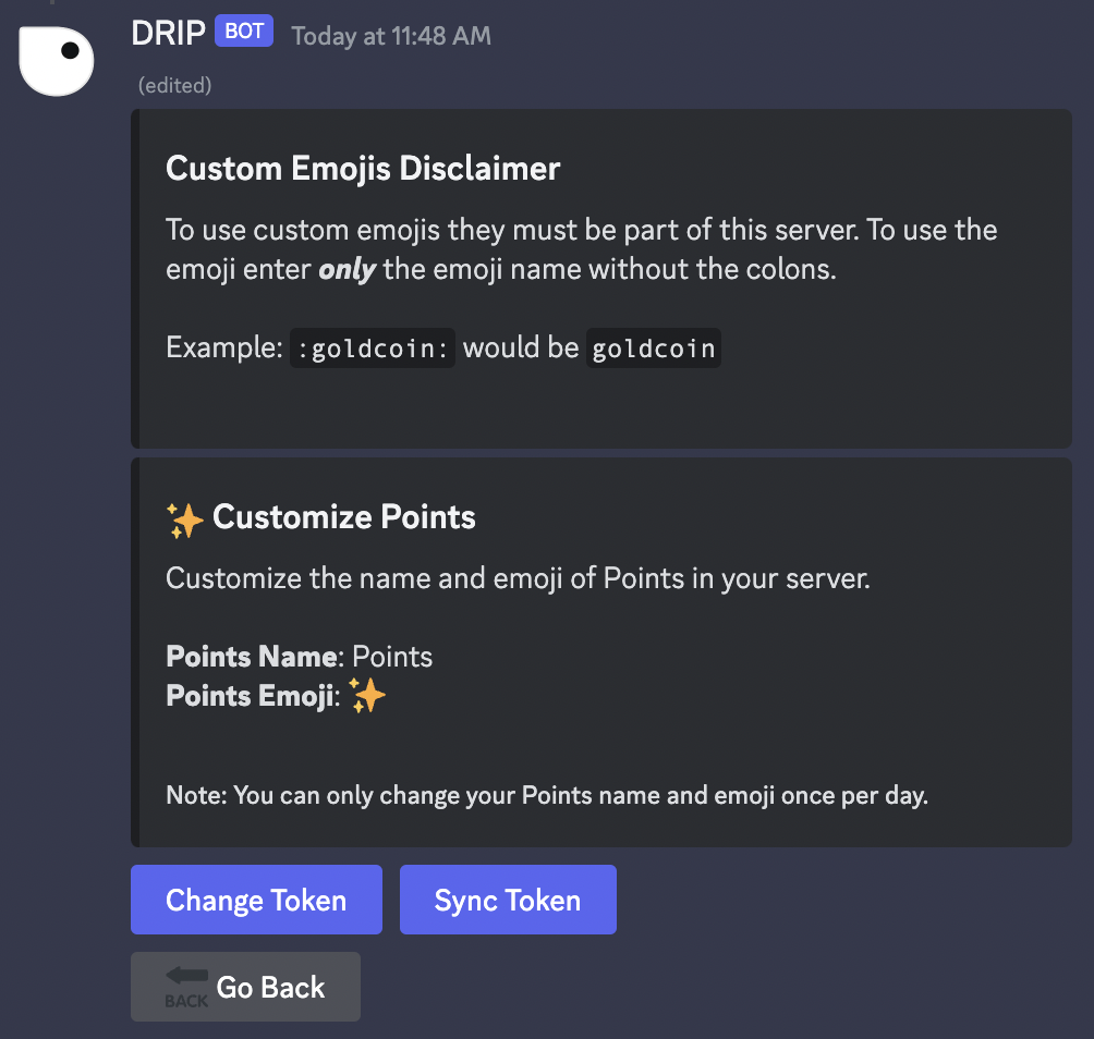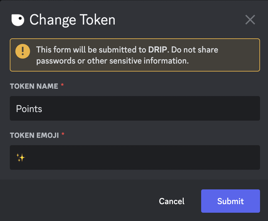 You can change the Points by using theChange Token button. Once you click the button, a form will open: