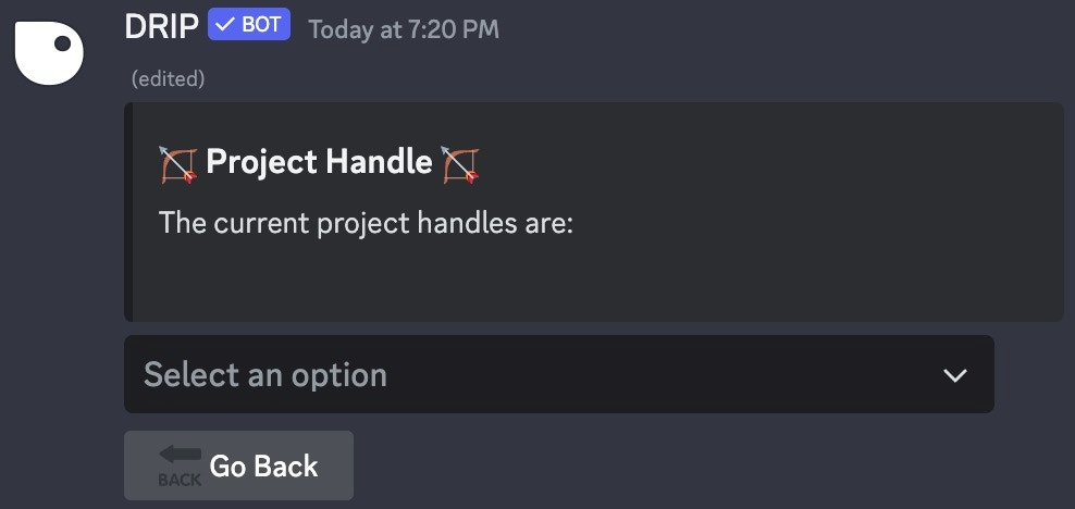 🪪 Project Handle from the dropdown menu in Quest Settings, a new embed will appear:
