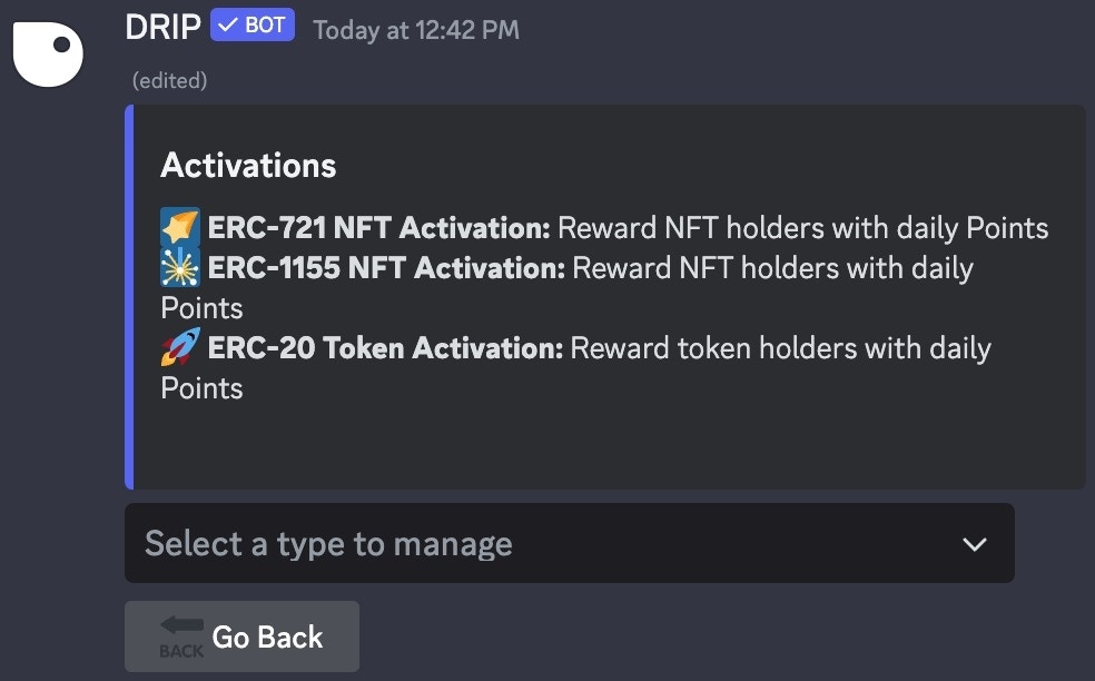 After selecting an EVM Chain from the dropdown in the🔥 Manage Activations menu, a new embed will appear: