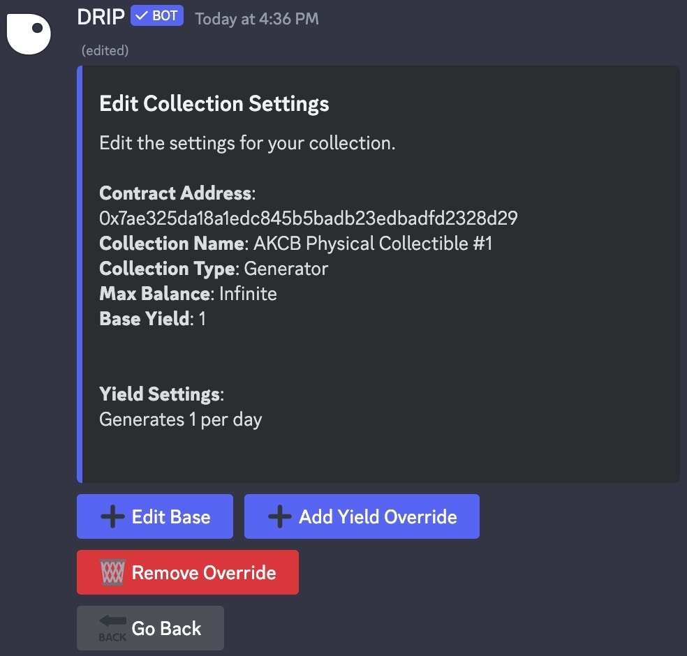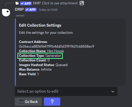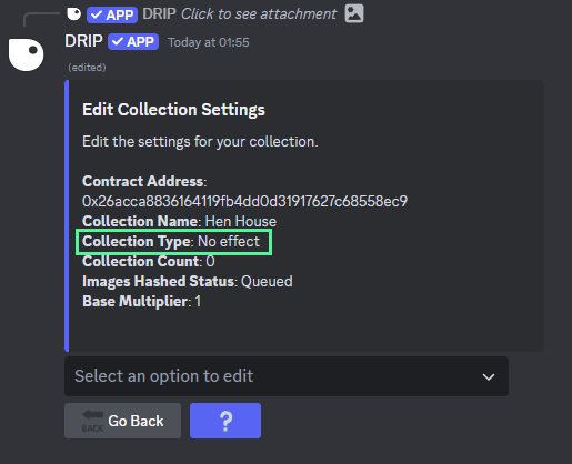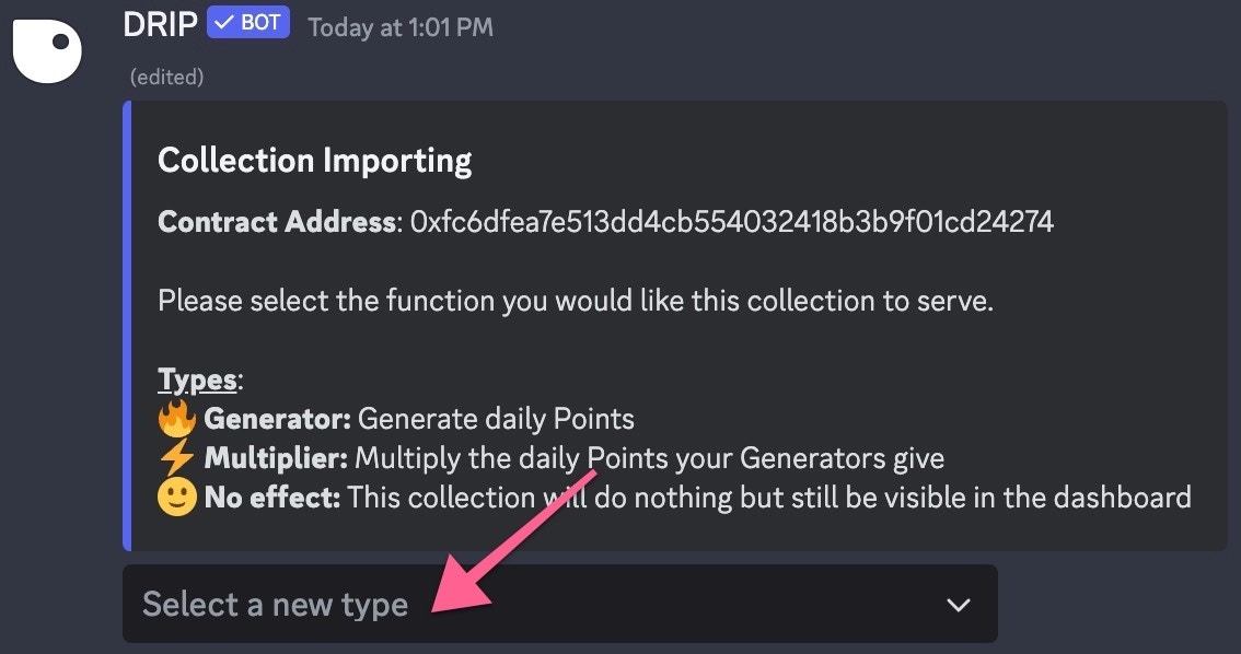 After the collection has been imported the following embed will appear, select the collection type from the dropdown menu