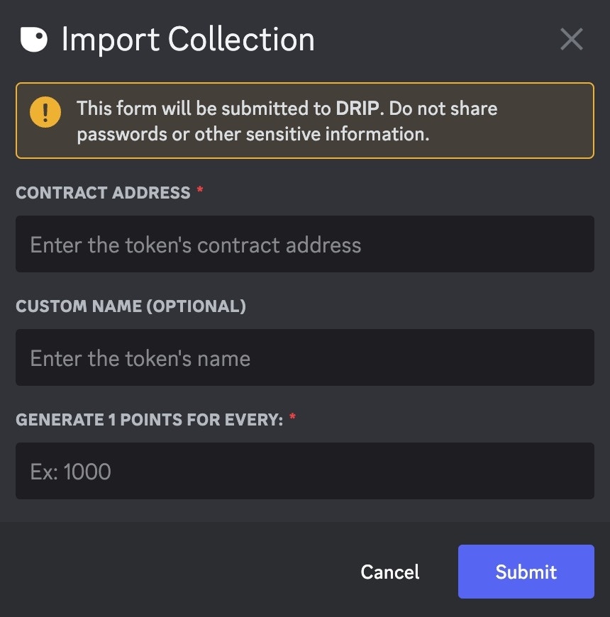 After selecting the ERC-721 from the dropdown menu, a form will appear for you to enter the contract address and custom name