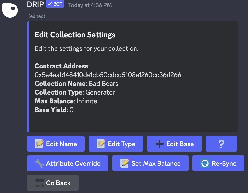 Edit Collection Settings Menu