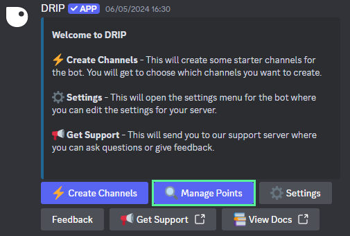 Click on the Manage Points button