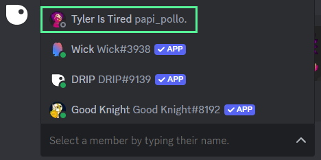 Select a username from the dropdown menu