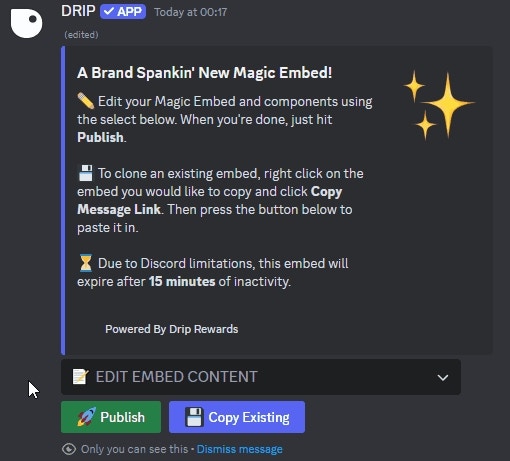 To edit the embed content, use the command/create type:β¨ Magic Embed and select the πEdit Embed option.