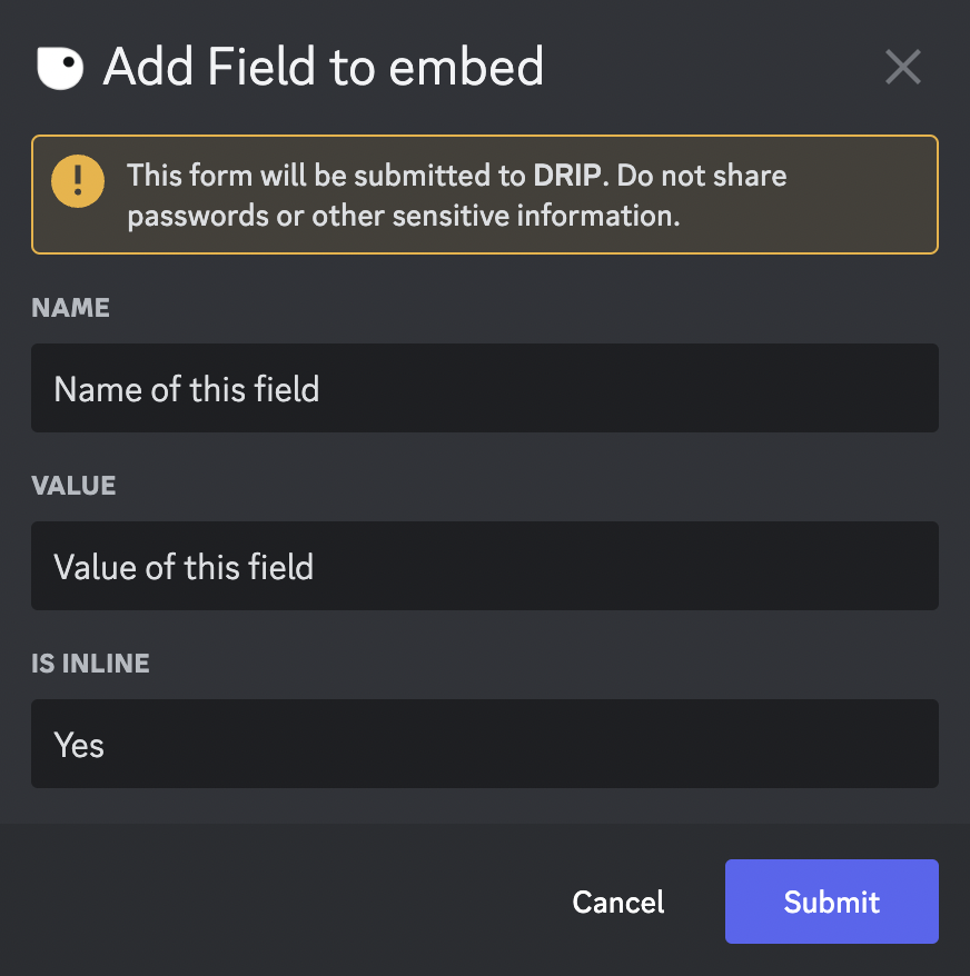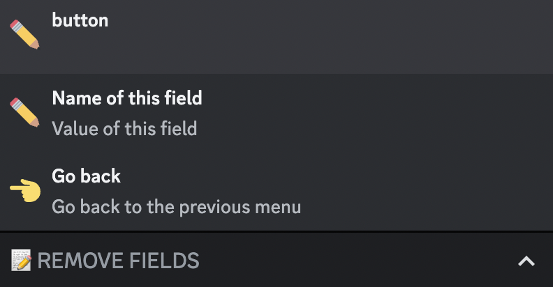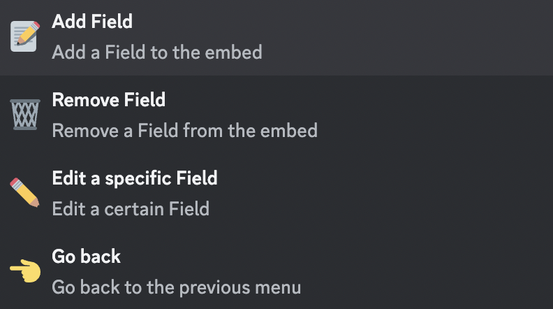 - 🗑️ Remove Field -> Remove a field from the embed if any