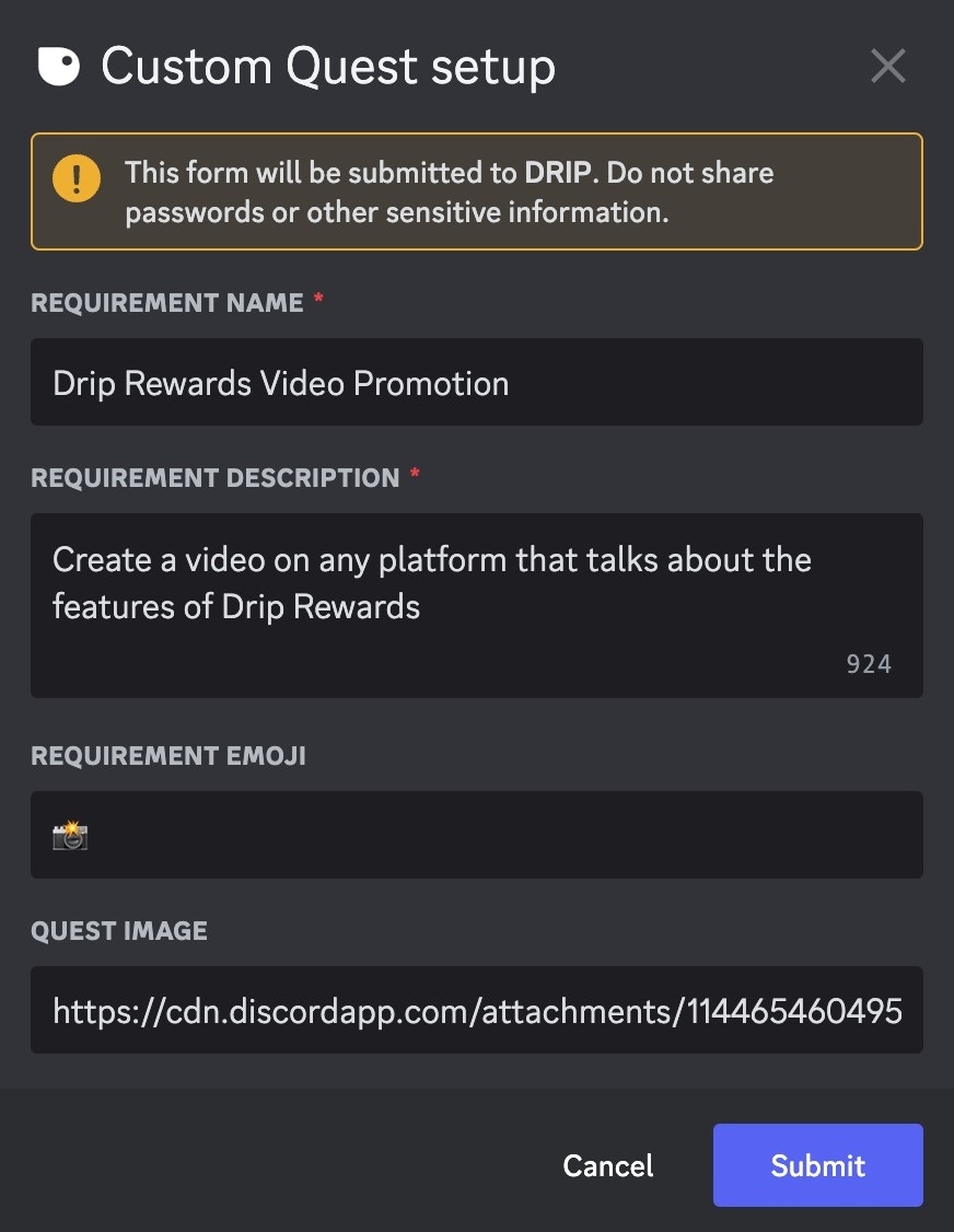 Custom Quest Setup Form