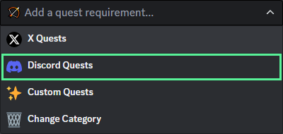 To create an Discord Quest, click onDiscord Quests from the dropdown menu